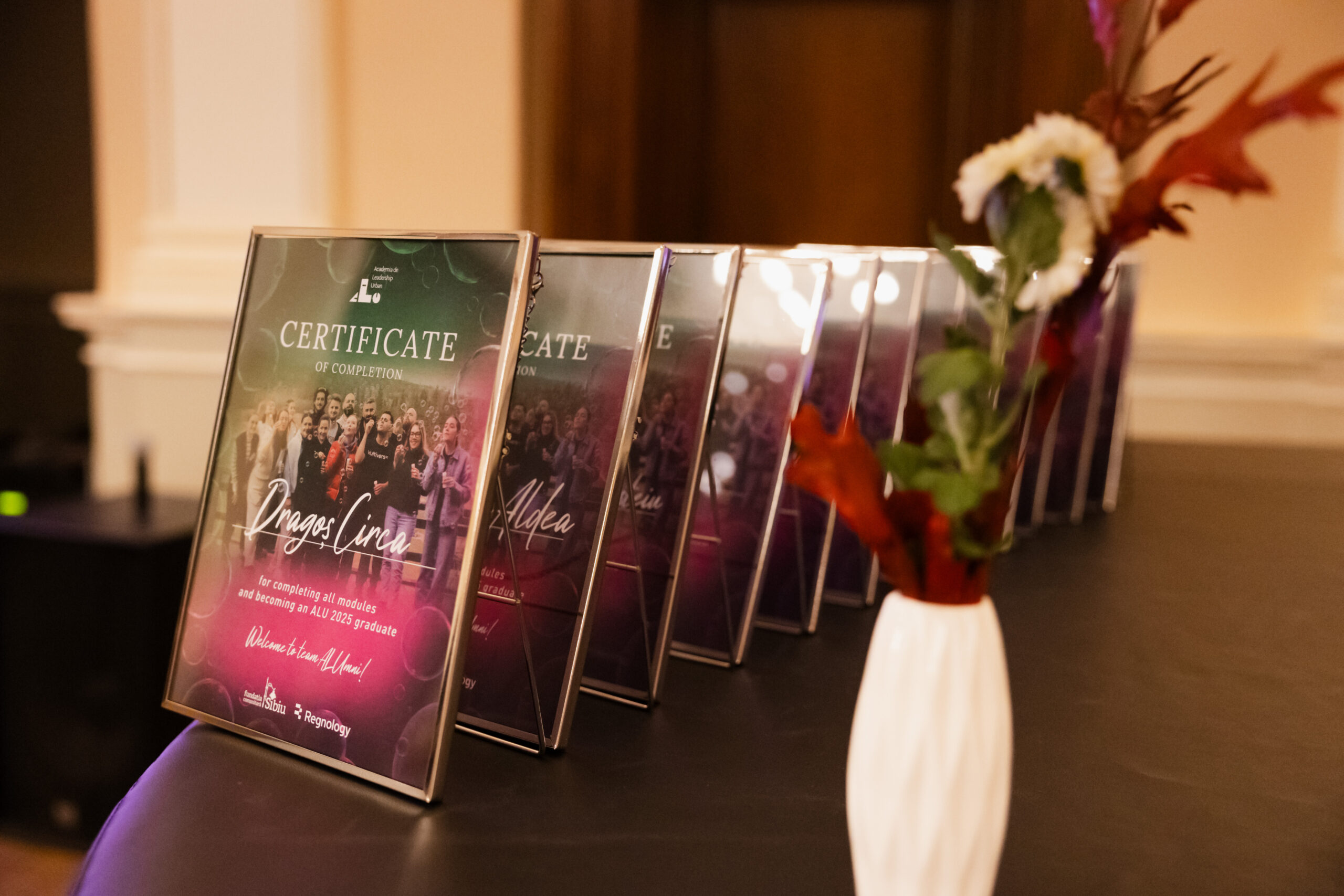 “ALU nu se termină cu o diplomă, ci începe cu o transformare. Este despre curajul de a-ți asuma responsabilitatea și de a face lucrurile mai bine, în comunitatea ta.” a adăugat Eugen Hăloiu, Engineering Manager, Regnology.
